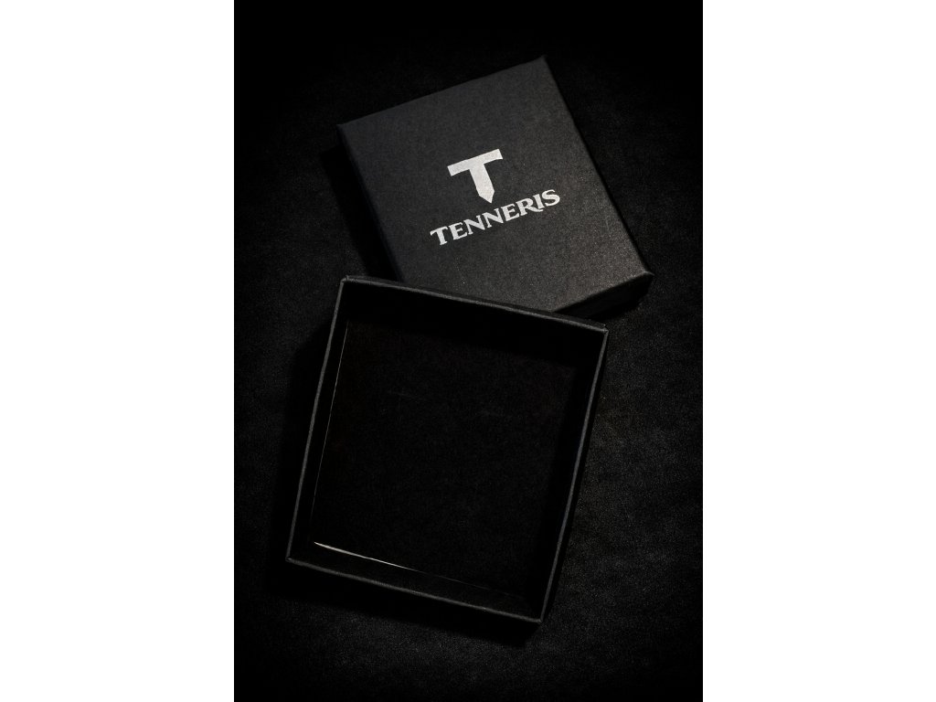 Krabička je vyrobena z kvalitního pevného materiálu s jemným matným povrchem a doplněna stříbrným logem značky TENNERIS. Vnitřní prostor poskytuje bezpečné uložení šperku a zároveň vytváří exkluzivní dojem při každém otevření.