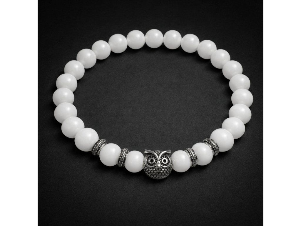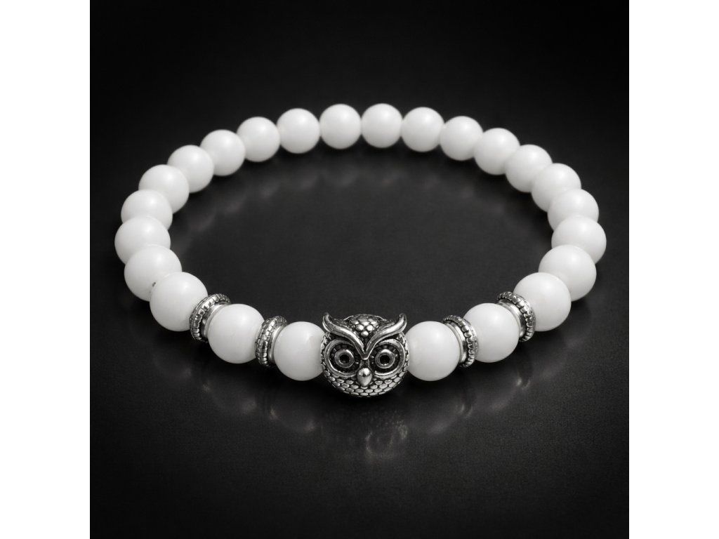 Minimalistická elegance s hlubším významem. Ručně vyráběný náramek z bílého přírodního kamene 8 mm doplněný detailní sovou z nerezové oceli symbolizuje moudrost, klid a sílu. Ideální jako stylový doplněk i jako osobní dárek pro někoho výjimečného.