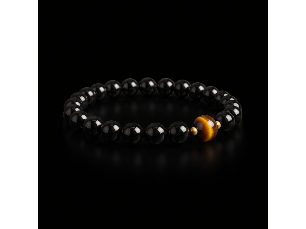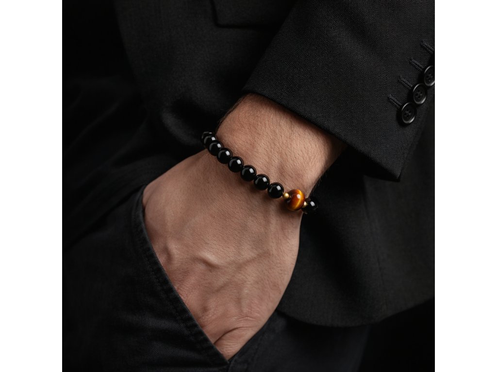 Pánský náramek z přírodního obsidiánu a tygřího oka je elegantním symbolem sebevědomí a vnitřní stability. Ručně vyráběný v malé české dílně z pečlivě vybraných kamenů, které si zachovávají svůj lesk i charakter po dlouhá léta. Korálky o průměru 8 mm a délka 21 cm zajišťují pohodlné každodenní nošení i nadčasový styl.