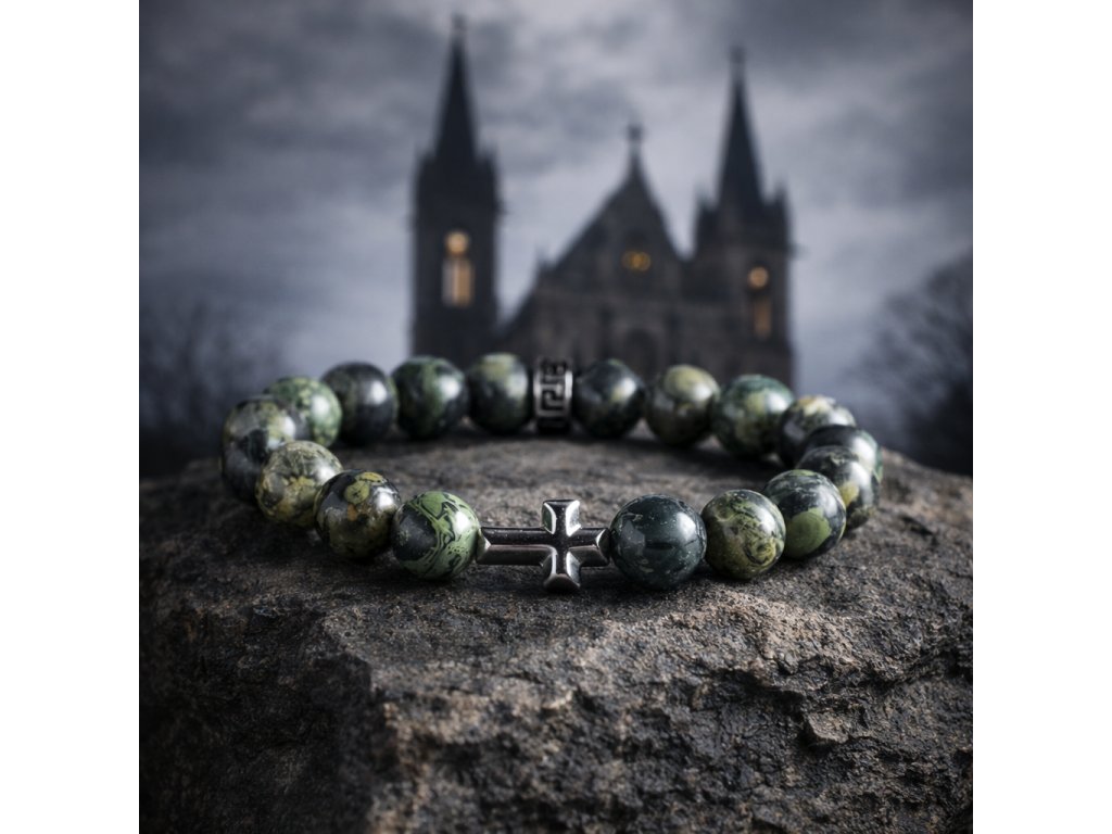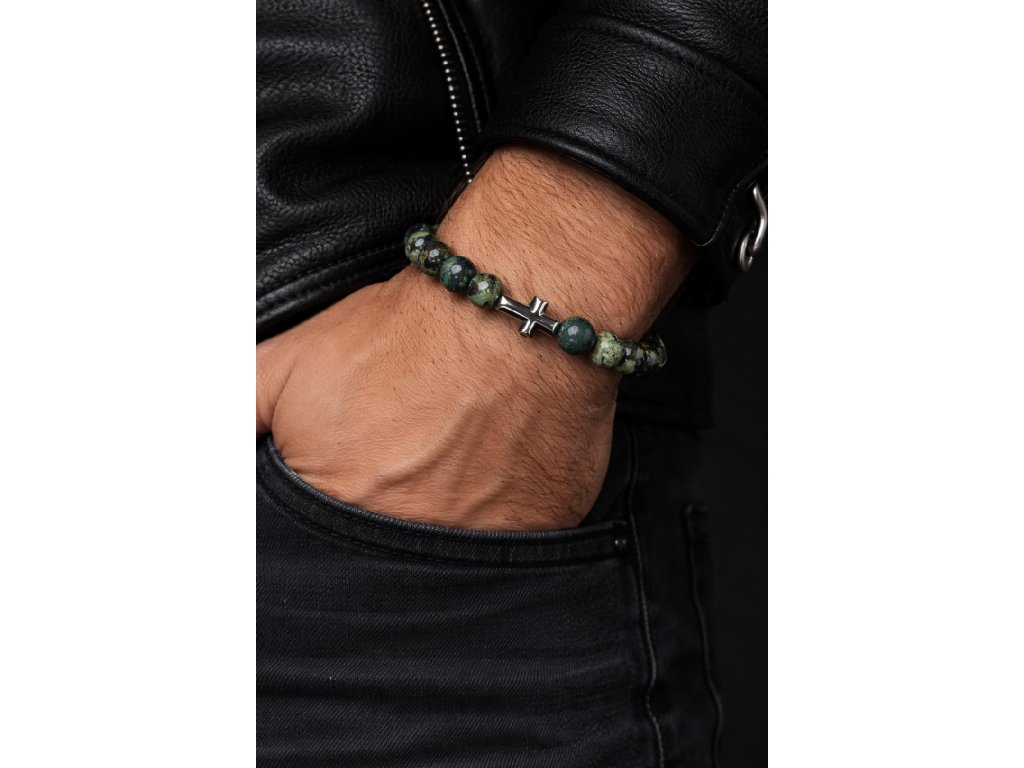 Pánský náramek z přírodního kambaba jaspisu s ocelovým křížem je symbolem síly, klidu a vnitřní rovnováhy. Ručně sestavený doplněk pro muže, kteří chtějí vyjádřit charakter, víru a styl v jednom nadčasovém šperku.