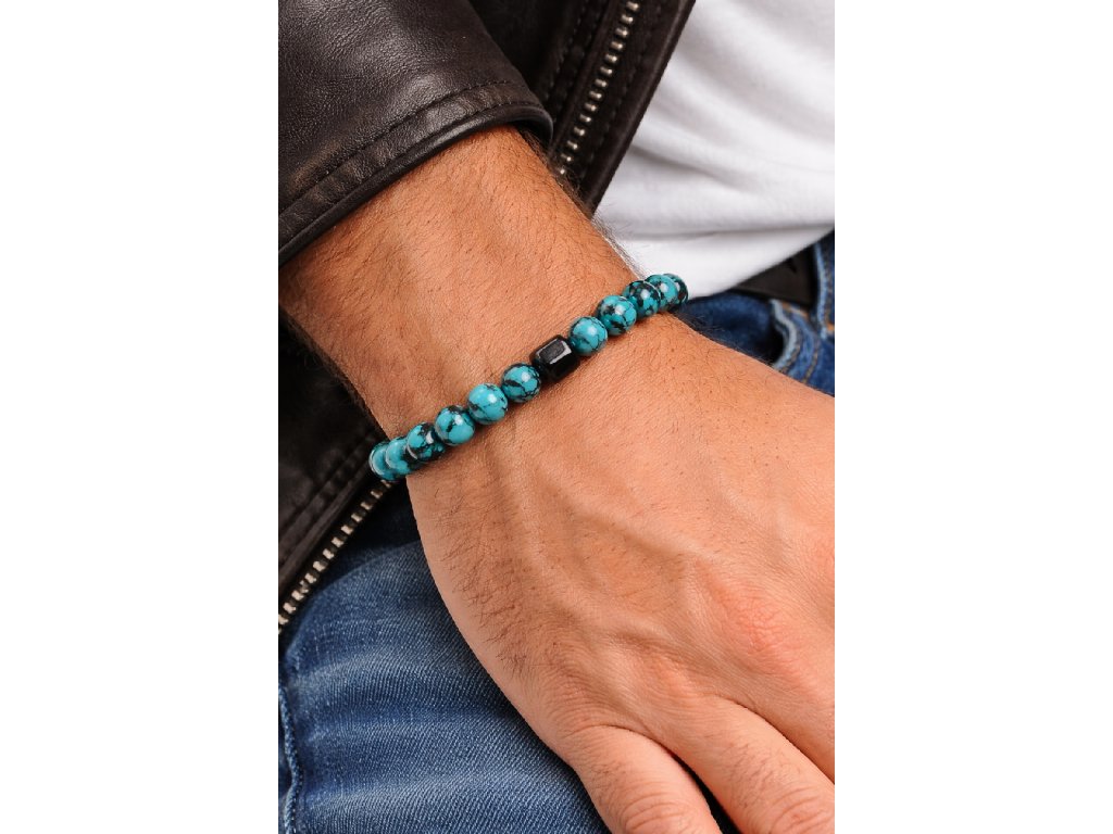 Dodejte svému stylu osobitost s tímto náramkem z přírodního kamene tyrkys, který spojuje krásu přírody, jednoduchý design a nadčasovou eleganci.