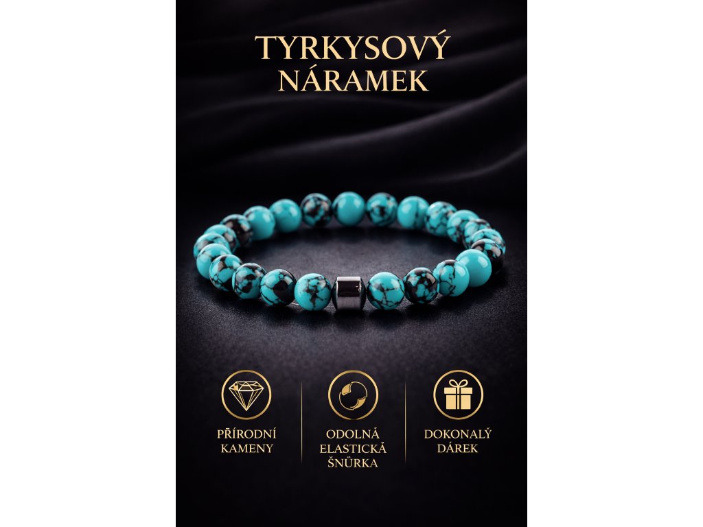 Tyrkys je po staletí považován za kámen ochrany, rovnováhy a pozitivní energie. Tradičně je spojován s klidem, sebevědomím a harmonií – ideální volba pro ty, kteří hledají nejen stylový šperk, ale i hlubší význam.