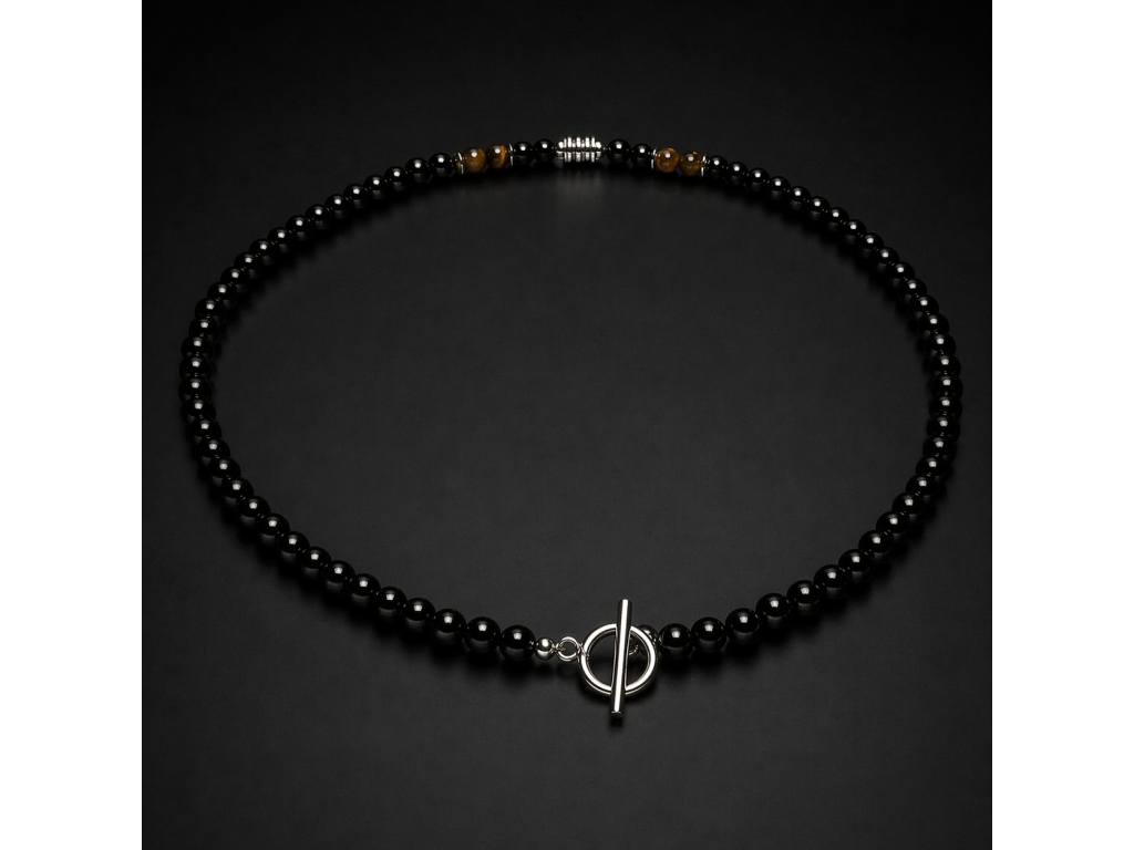 Pánský náhrdelník z obsidiánu a tygřího oka 6 mm
