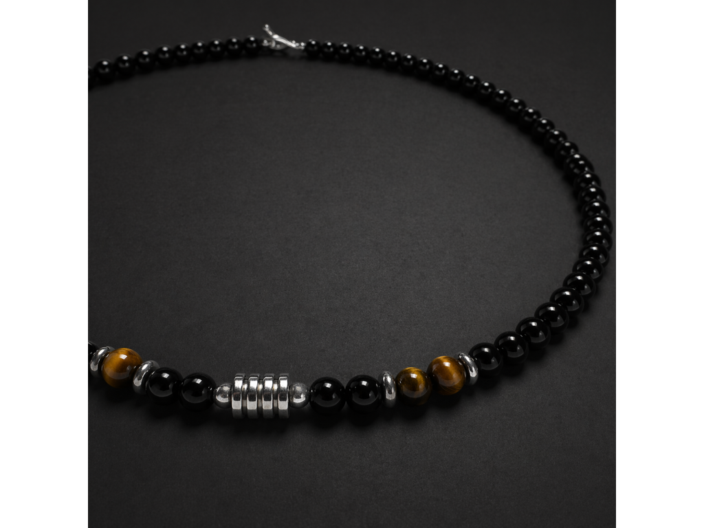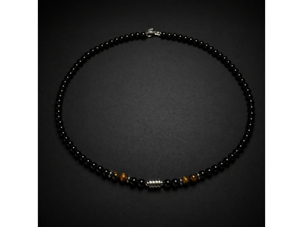 Elegantní ručně vyráběný , 50 cm dlouhý náhrdelník z přírodního obsidiánu a tygřího oka představuje sílu, ochranu a styl. Precizní zpracování, minimalistický design a kvalitní nerezová ocel z něj dělají ideální doplněk i výjimečný dárek pro partnera.