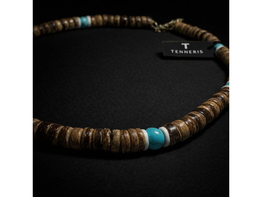 Náhrdelník s tyrkysovými akcenty a kokosovým dřevem