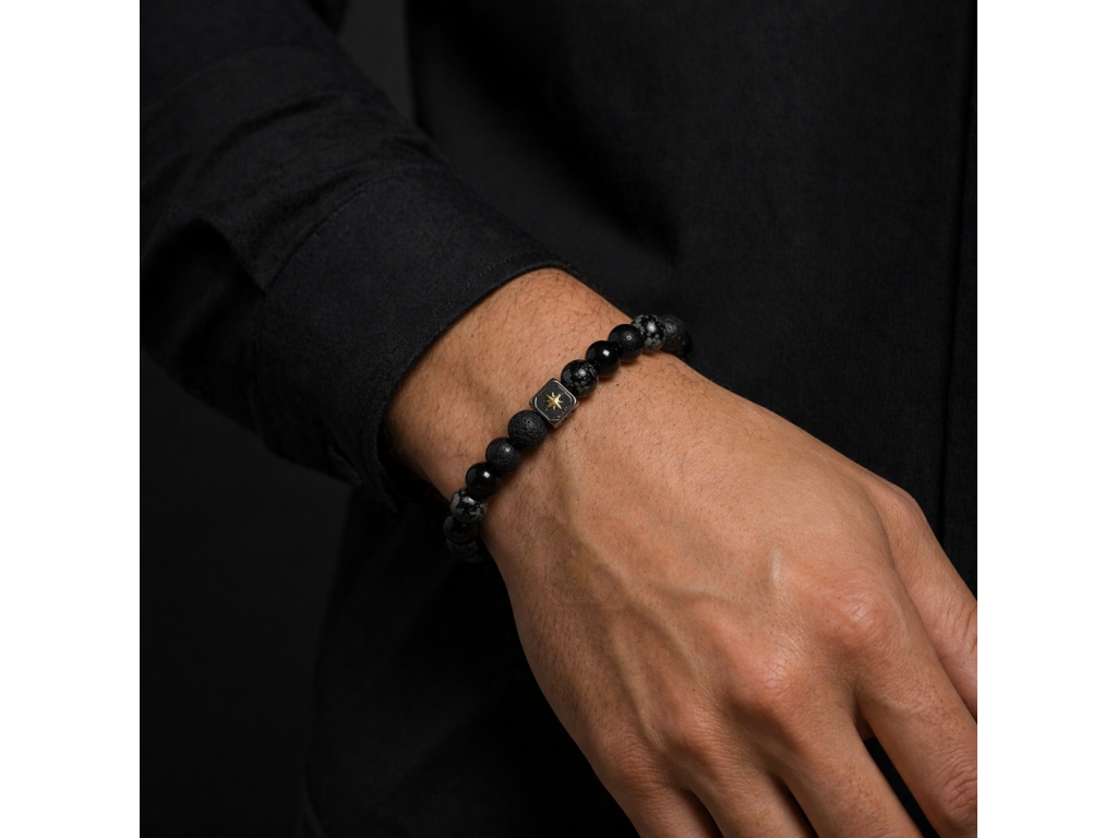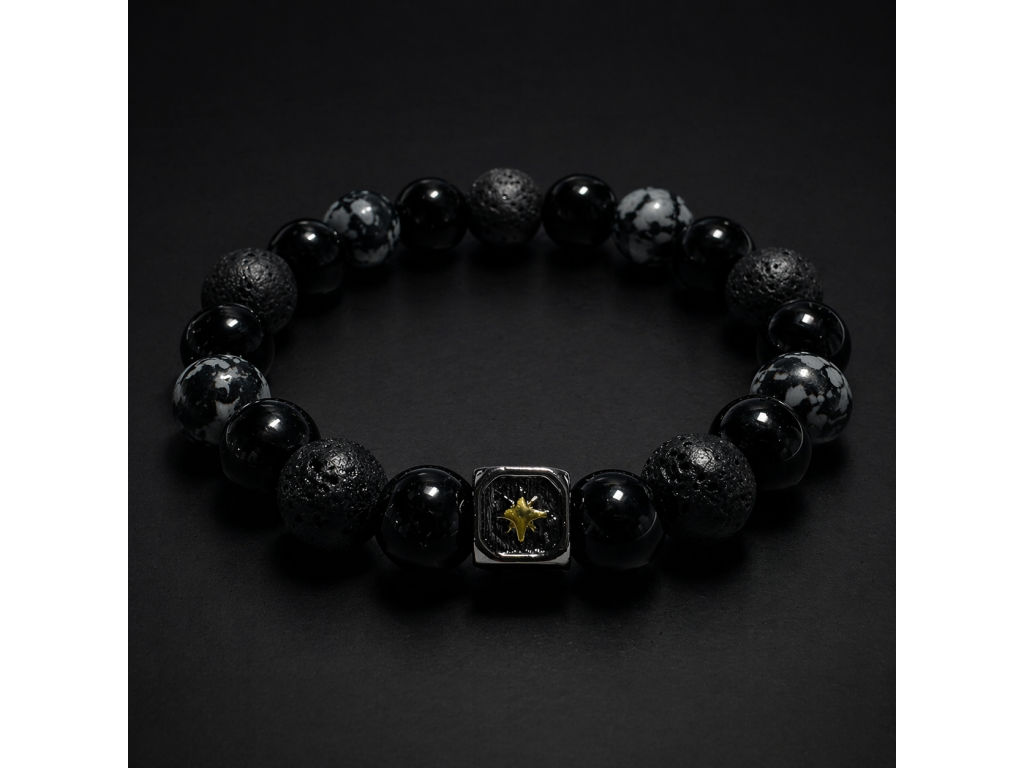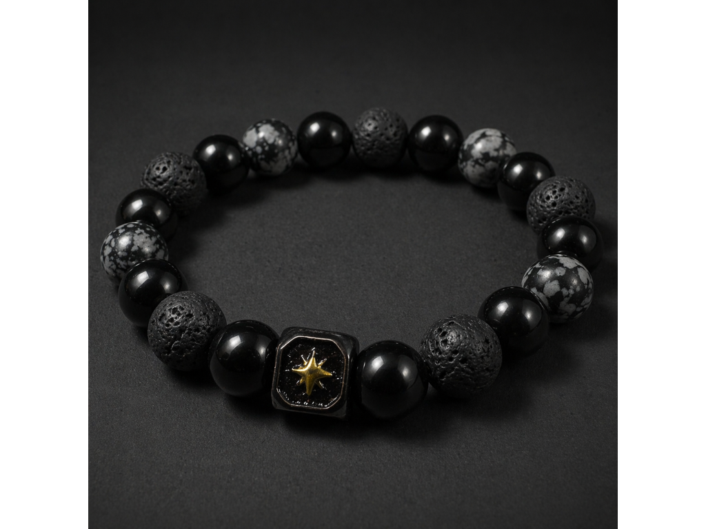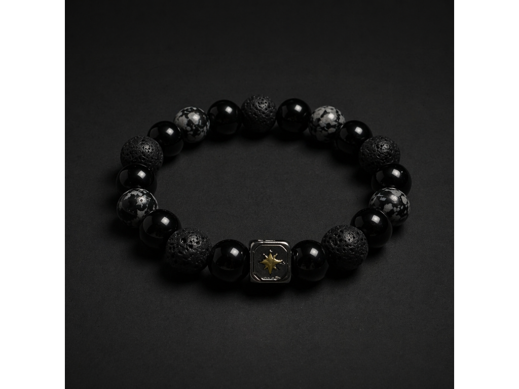 Objevte sílu přírodních kamenů v podobě elegantního pánského náramku, který kombinuje onyx, obsidián a lávový kámen. Tento ručně vyráběný náramek je navržen pro muže, kteří hledají nejen styl, ale i symboliku a kvalitu.