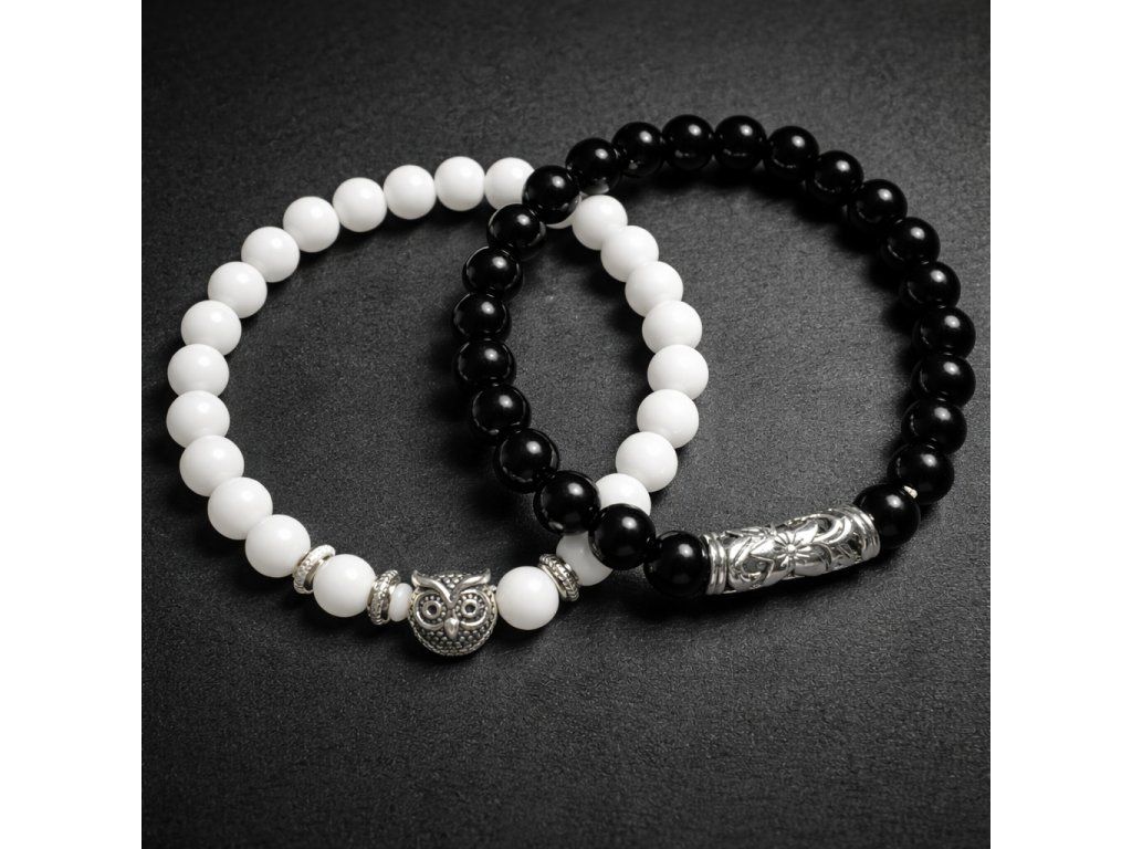 Každý náramek je ručně vyroben s důrazem na kvalitu, detail a dlouhou životnost. Kombinace černých a bílých korálků představuje protiklady, které se vzájemně doplňují – stejně jako vy a váš partner.